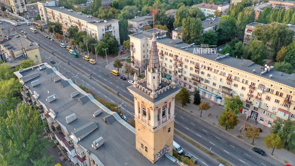 Радянську неокласику можна зустріти і на Шостому селищі. Тут перлиною цього стилю можна назвати саме будинок з вежею за адресою проспект Соборний, 175. На карті Шостого селища – це Дев’ятий квартал. А точніше – та його частина, яку не встигли забудувати до 1941 року. Архітекторам і будівельникам довелося тут працювати вже після війни – за часів, які цілком можна назвати золотими для запорізького містобудування. Під час повоєнного десятиліття місто стрімко перетворюється і росте. У тому числі й вгору – завдяки популярним у той час баштам та шпилями. Один із прикладів – саме на розі проспекту Соборного і вулиці Верхньої.